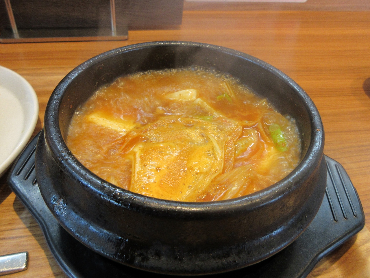 スンドゥブチゲ&キンパのランチを食べましたが、スンドゥブチゲは熱々の状態で出てきて、スパイシーな辛さの中に旨味も感じられ、大満足でした。