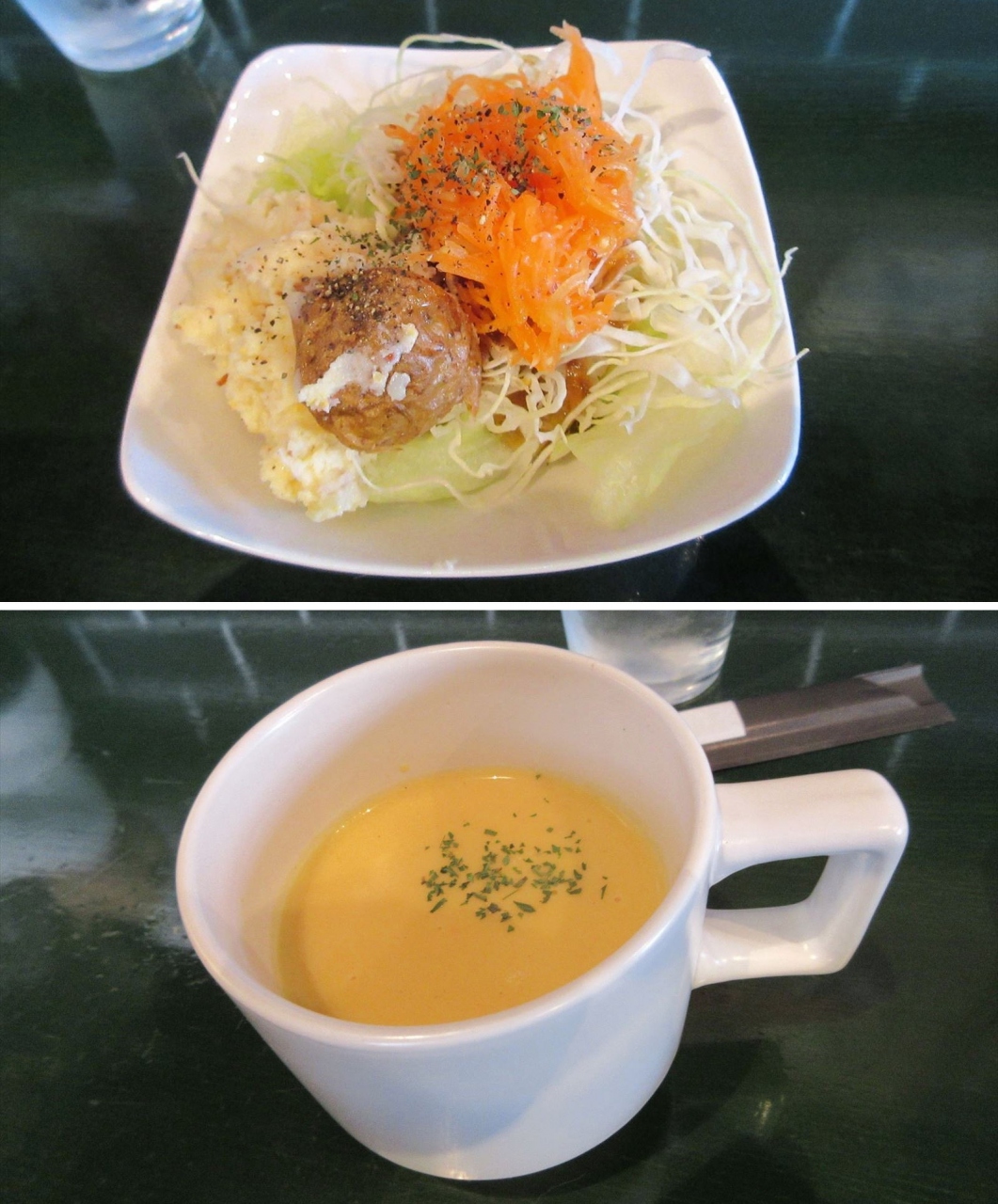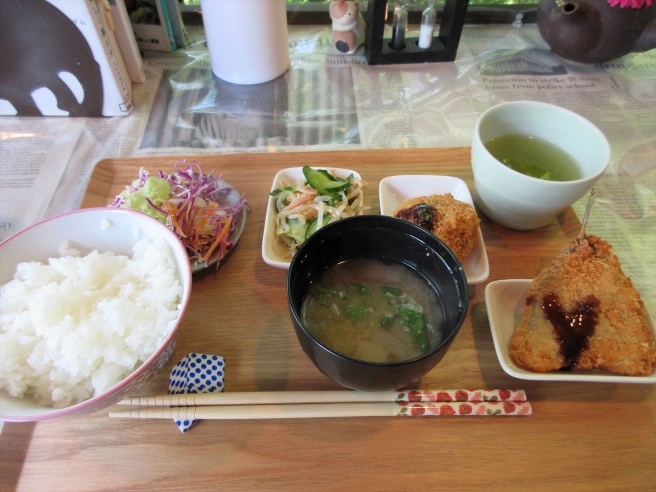 ランチのみの営業ですが、なんとたったの600円! 7~8種類のおかずから、3種類を選ぶスタイルです(おかずは一品50円で追加できます)。これにご飯・味噌汁にサラダが付きます。ヘルシー系で、ガッツリという感じではありませんが、お値段を考えれば大満足。コーヒーも付いてていました。