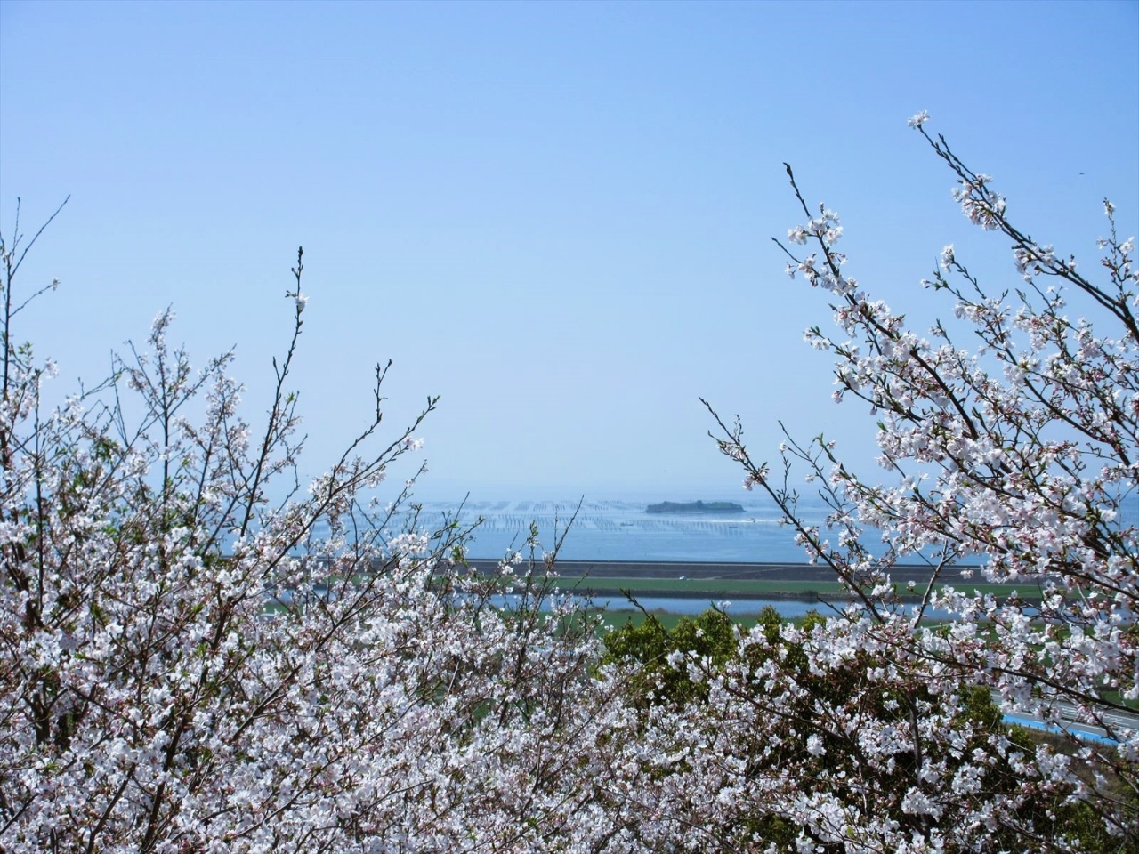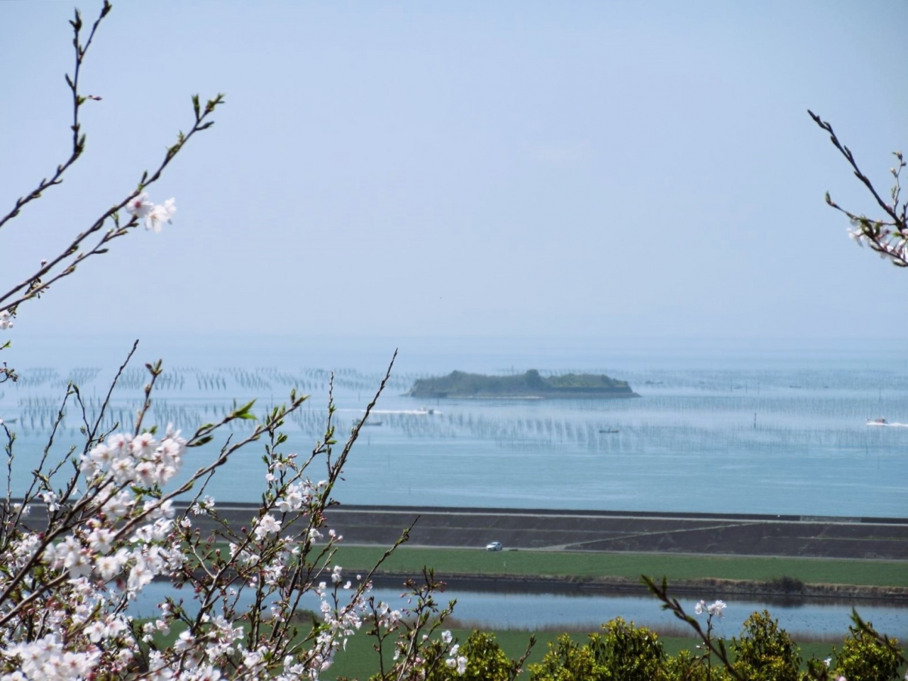 また、公園の先には小さな広場があり、こちらもゆっくり楽しめます。広場の先には展望台があり、干拓された海岸線から有明海、三池炭鉱の人工島・初島なども見えます。