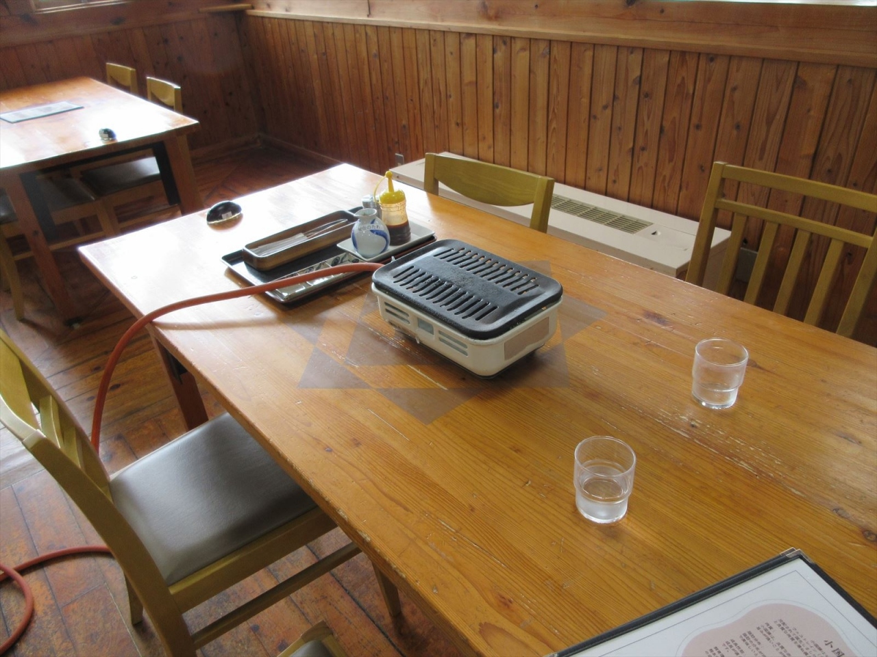 焼肉定食は、テーブル上で焼くスタイル。あか牛と新鮮な野菜を楽しめます。