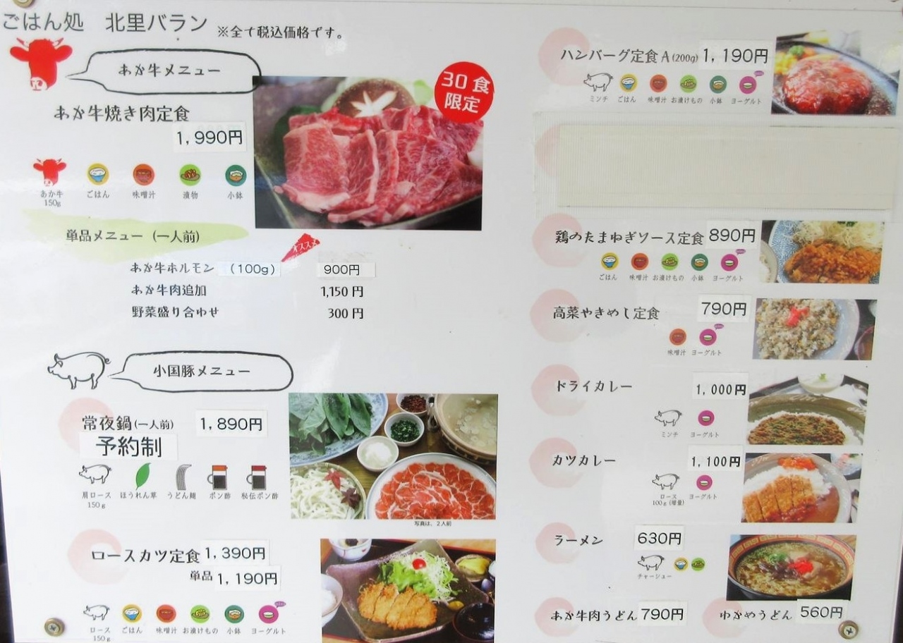 今回は、あか牛焼肉定食と、小国豚のロースカツ定食を食べました。