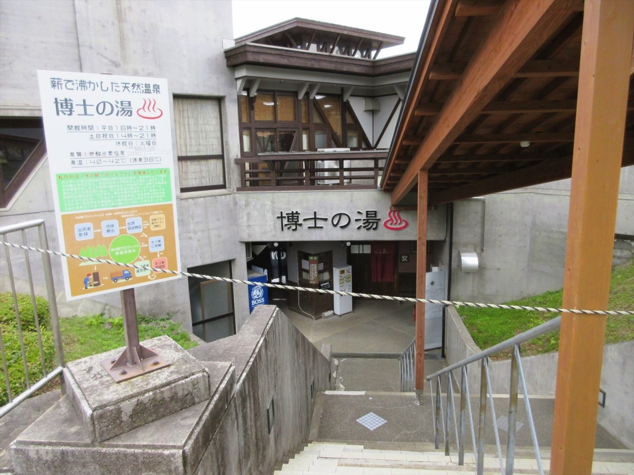 建物の地下には温泉施設(博士の湯)もあり、お隣には宿泊研修施設の木塊館があります。前述の北里柴三郎記念館と併せて、同じ法人が運営しているようです。