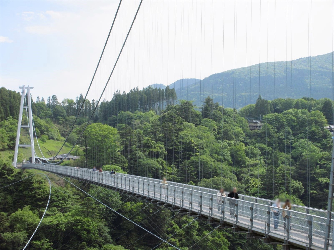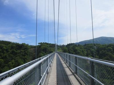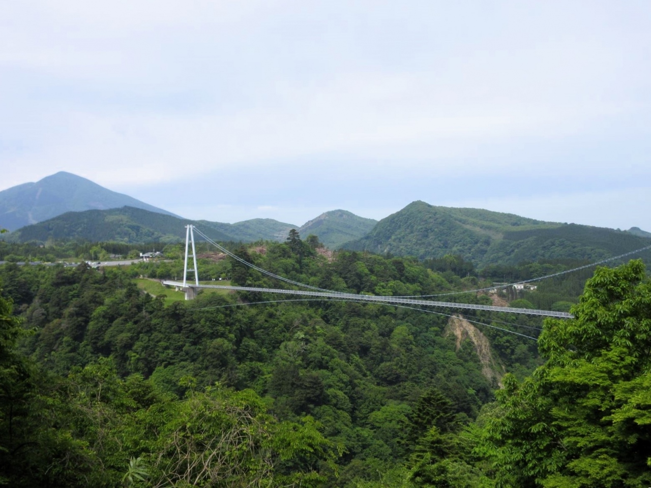 九重町有数の観光スポット、深い渓谷上に長い吊橋がかかっています。