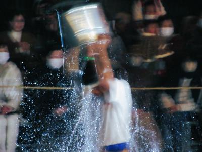 明治元年、かつて宿場町・陣屋町として賑わった三池地区は大火事に見舞われ、80戸余りが焼失。以後、火災が行らないことを願い、厳冬に水を被る行事が始まりました。