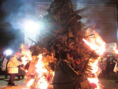 境内は多くの人で賑わい、臼かぶりのあとは、どんど焼きが行われ、粥が振舞われます。