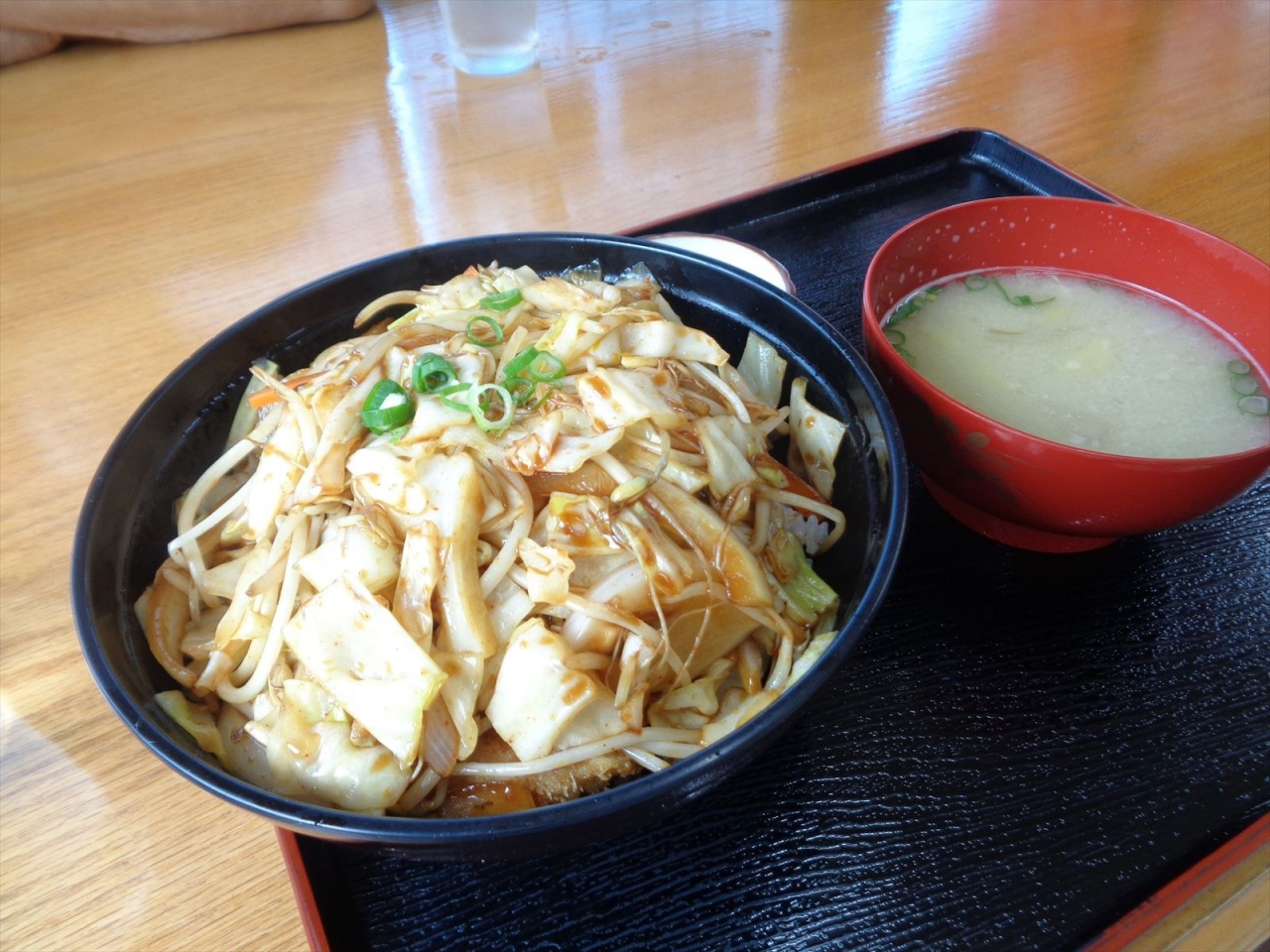 うま辛ソースカツ丼は、カツ丼の上にスパイシーなソースで炒めた野菜がのっていて、これが食欲をそそります。カツもしっかりしたものでした。両方ともボリュームも十分。