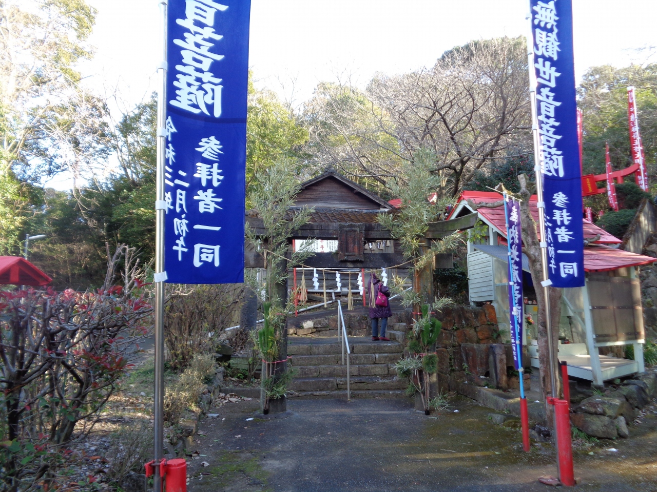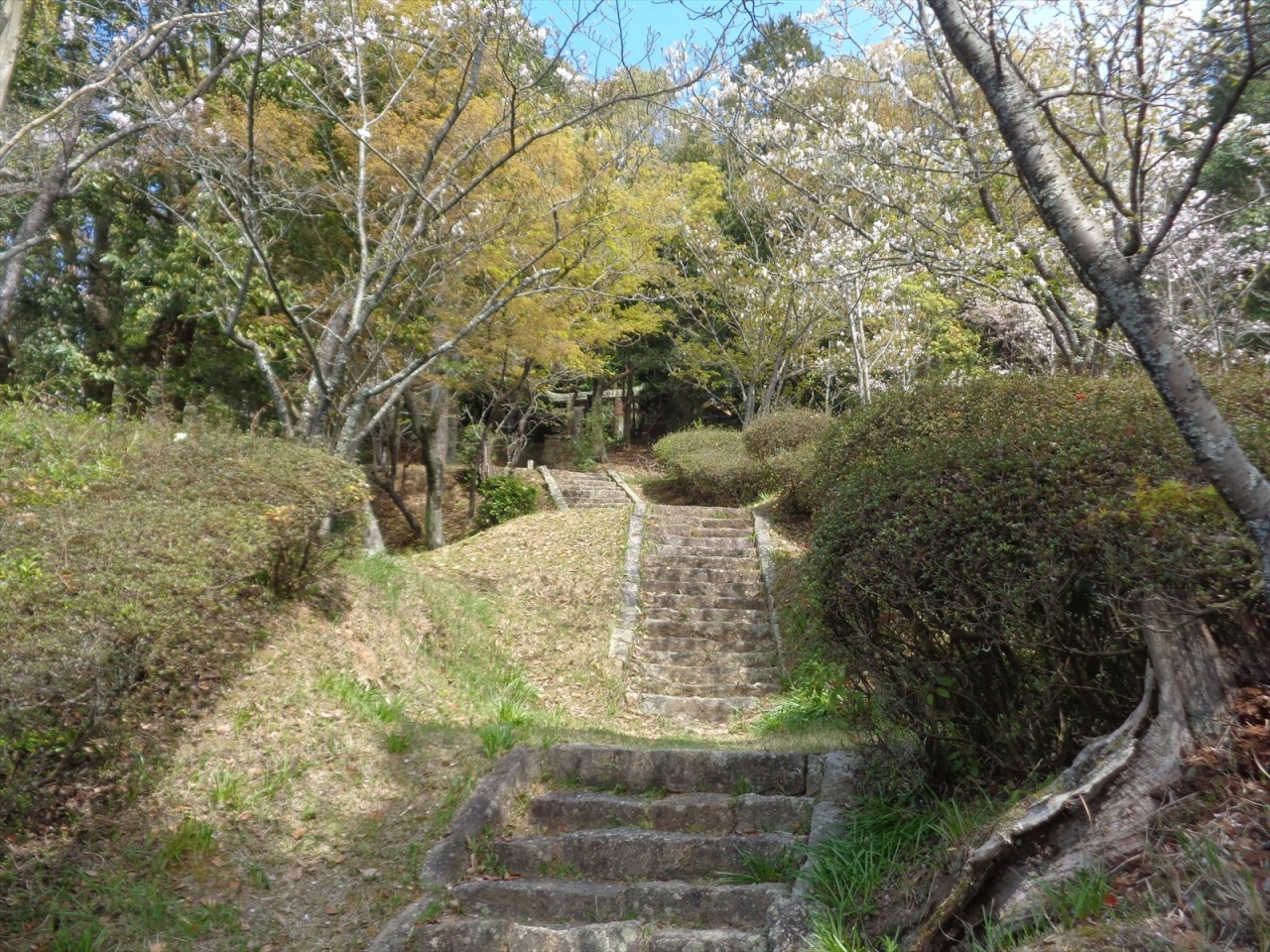 国道443号沿い、南関いきいき村から少し南へ進むと道の東側に鳥居と参道が見えます。