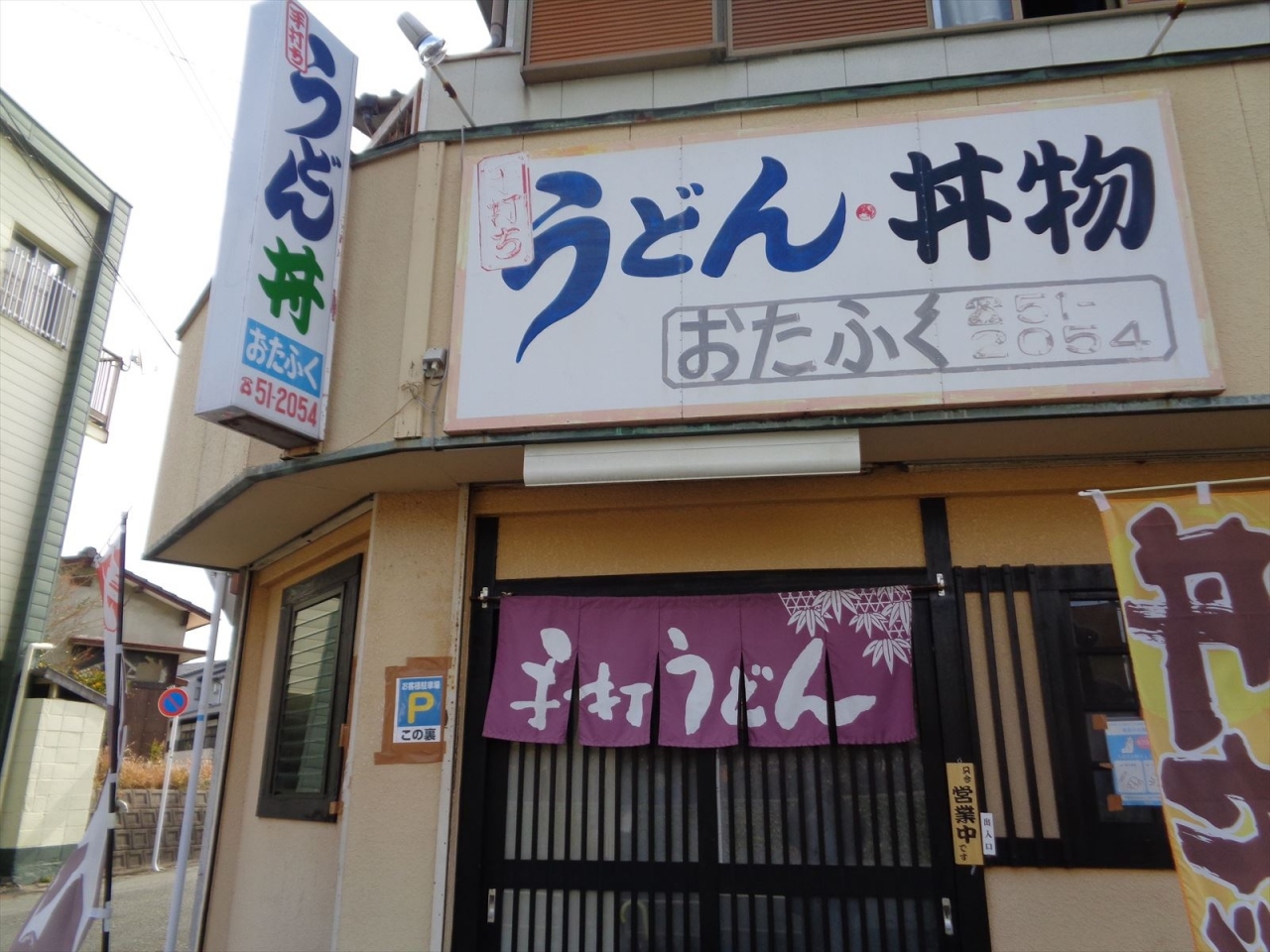 大牟田市の通町、道路沿いにある町食堂、手打ちうどんと丼もののお店です。