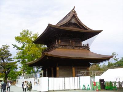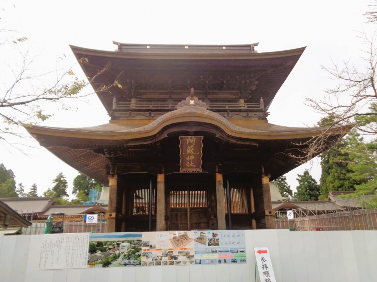 地震で大きな被害を受け、修復作業のために囲いが設けられていましたが、ようやく外されて見られるようになりました。ただ、2023年10月初めの時点では一部修復中で門を通ることはできず、近くから眺めるのみでした。それでも、門は巨大で歴史を感じさせる豪壮なもの。屋根の下の飾りなどは繊細にして風格がありました。阿蘇に行ったら立ち寄ってみたい所です。
