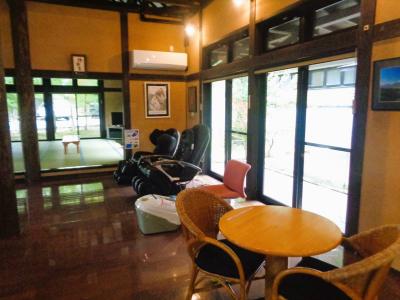 建物前には駐車場があり、その横には家族風呂もありました。車・公共交通機関、どちらでも利用しやすい施設です。尚、館内には休憩室はありますが、食事処はありませんでした。- 旅行時期