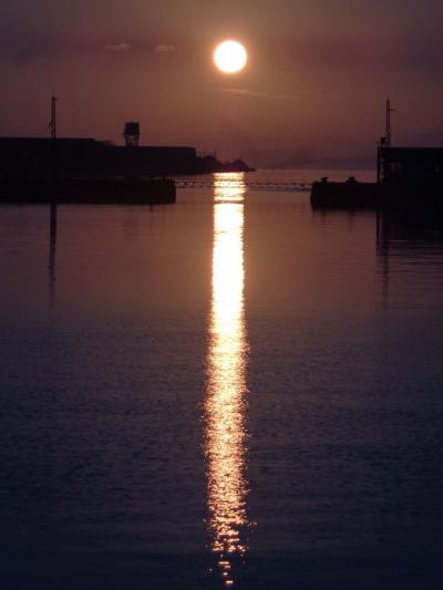 年に二度、それぞれ十日間ほど三池港の閘門内に夕日が沈む光の航路。