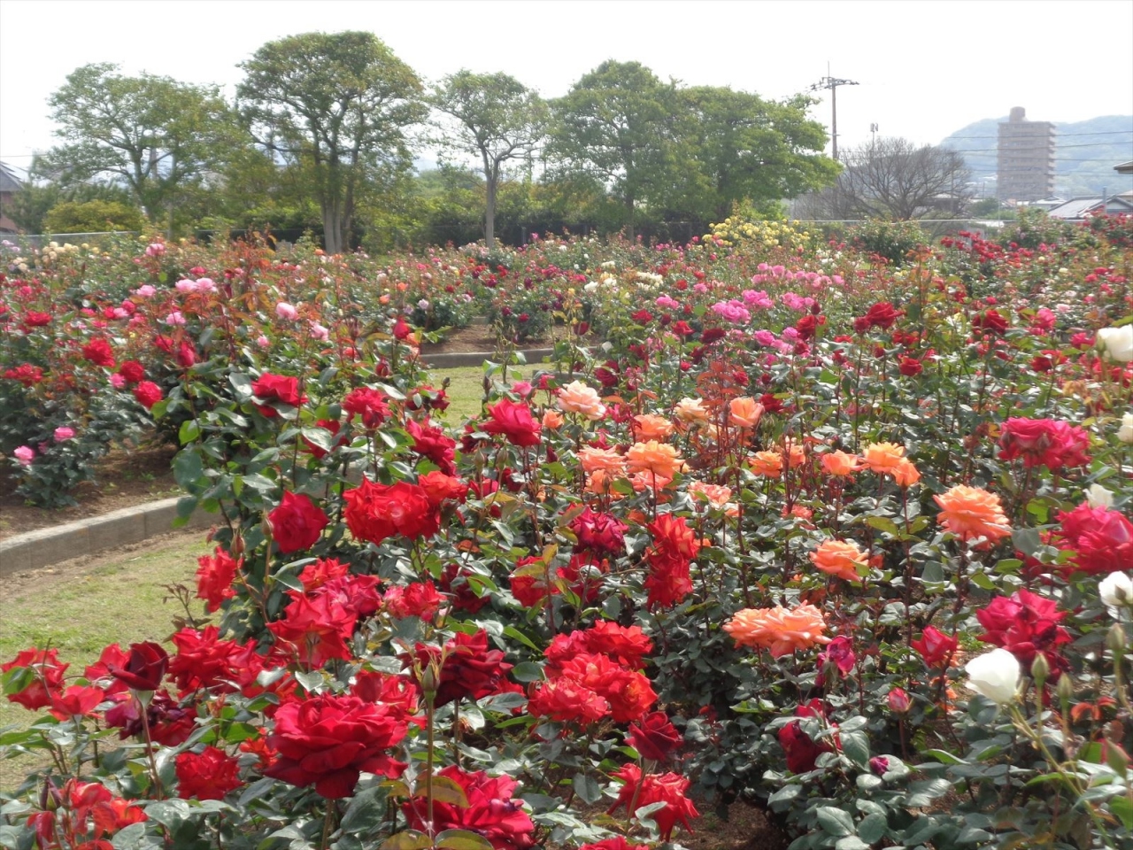 熊本県荒尾市の西北部、福岡県大牟田市との県境に近いエリアにあるバラ園です。