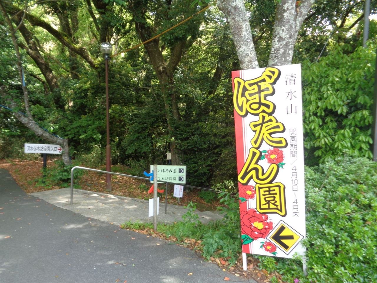 清水寺と本坊庭園で知られている場所ですが、駐車場からいったん小川沿いに降りて進み、本坊庭園の少し手前で川を渡って小高い場所にぼたん園が開かれています。