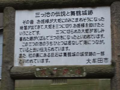 頂上には三池宮があり、大蛇山伝説に関わる三つの池があります。