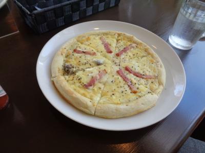 カルボピザは、カルボナーラのソースを使ったピザ。個性的な味ですが、美味しくいただきました。