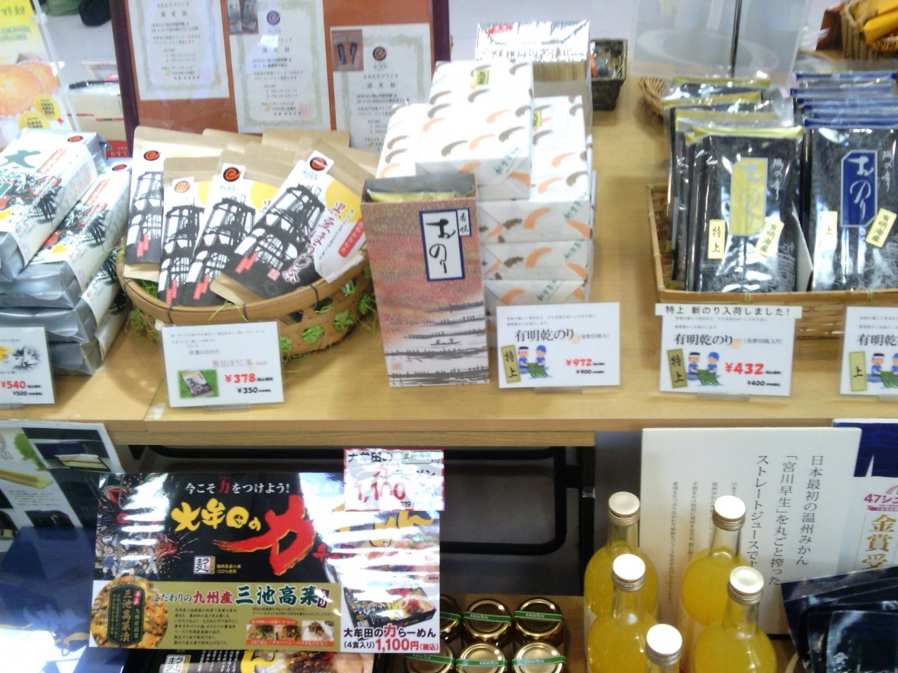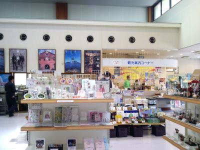 観光案内のアドバイスもしてもらえるし、パンフレット類も揃っています。レンタサイクルもある。また、土産物が充実しています。大牟田市の名産物がバラエティ豊かに揃っています。ゆるキャラ「ジャー坊」のグッズ。炭鉱をモチーフにしたお菓子、昔からの定番の銘菓や地元産の果物を使ったジュースや有明海の海苔。こんなに名産物があったんだと驚き、見ているだけでも楽しかったです。