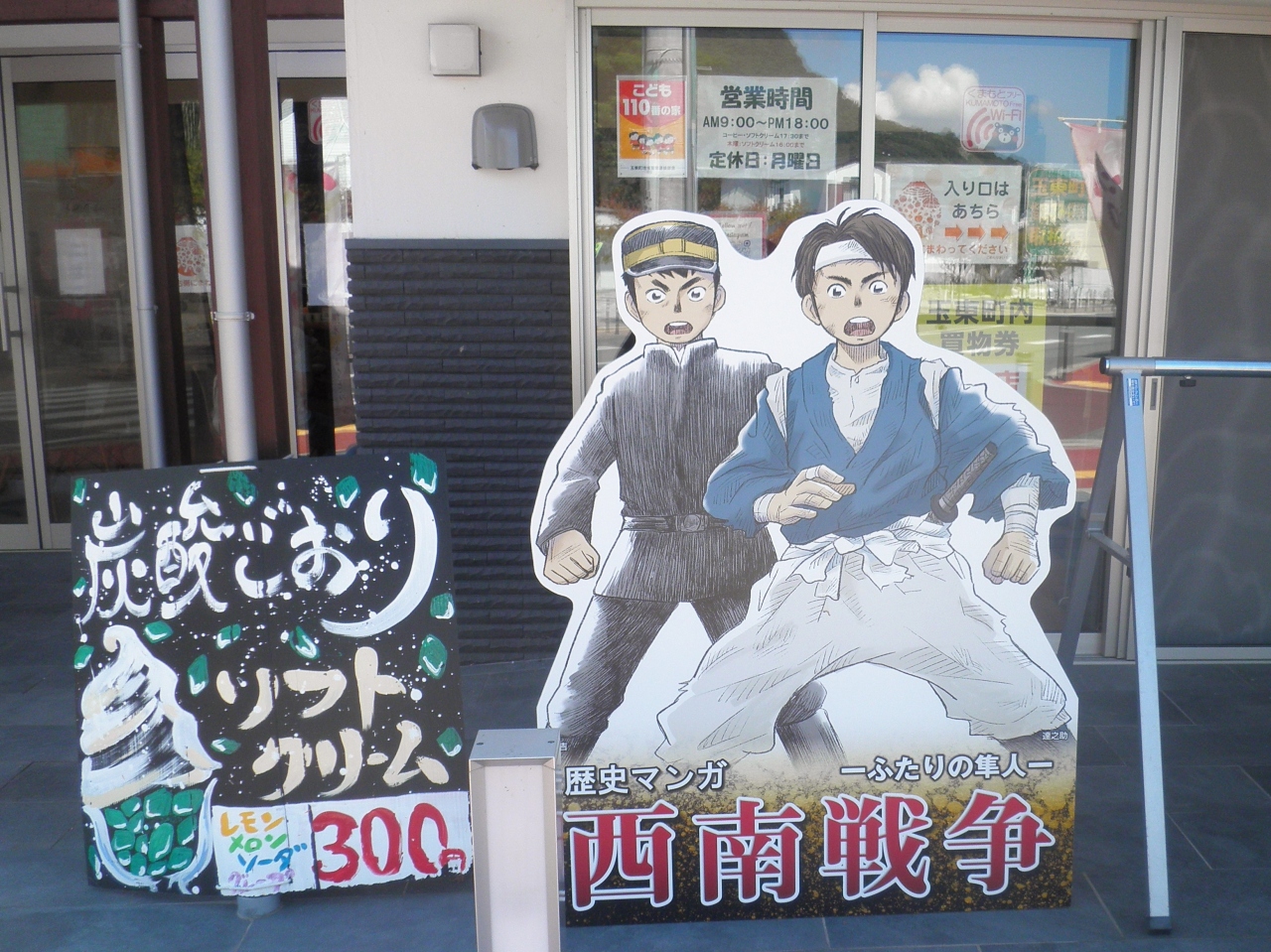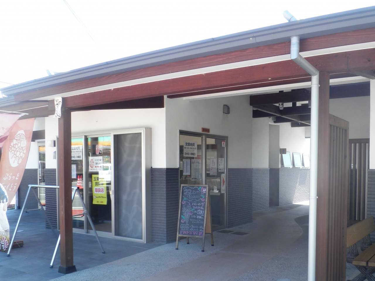 玉東町の名物、ハニーローザを使ったソフトクリームが名物。建物の中には観光のパンフレットを置いたコーナーもあります。