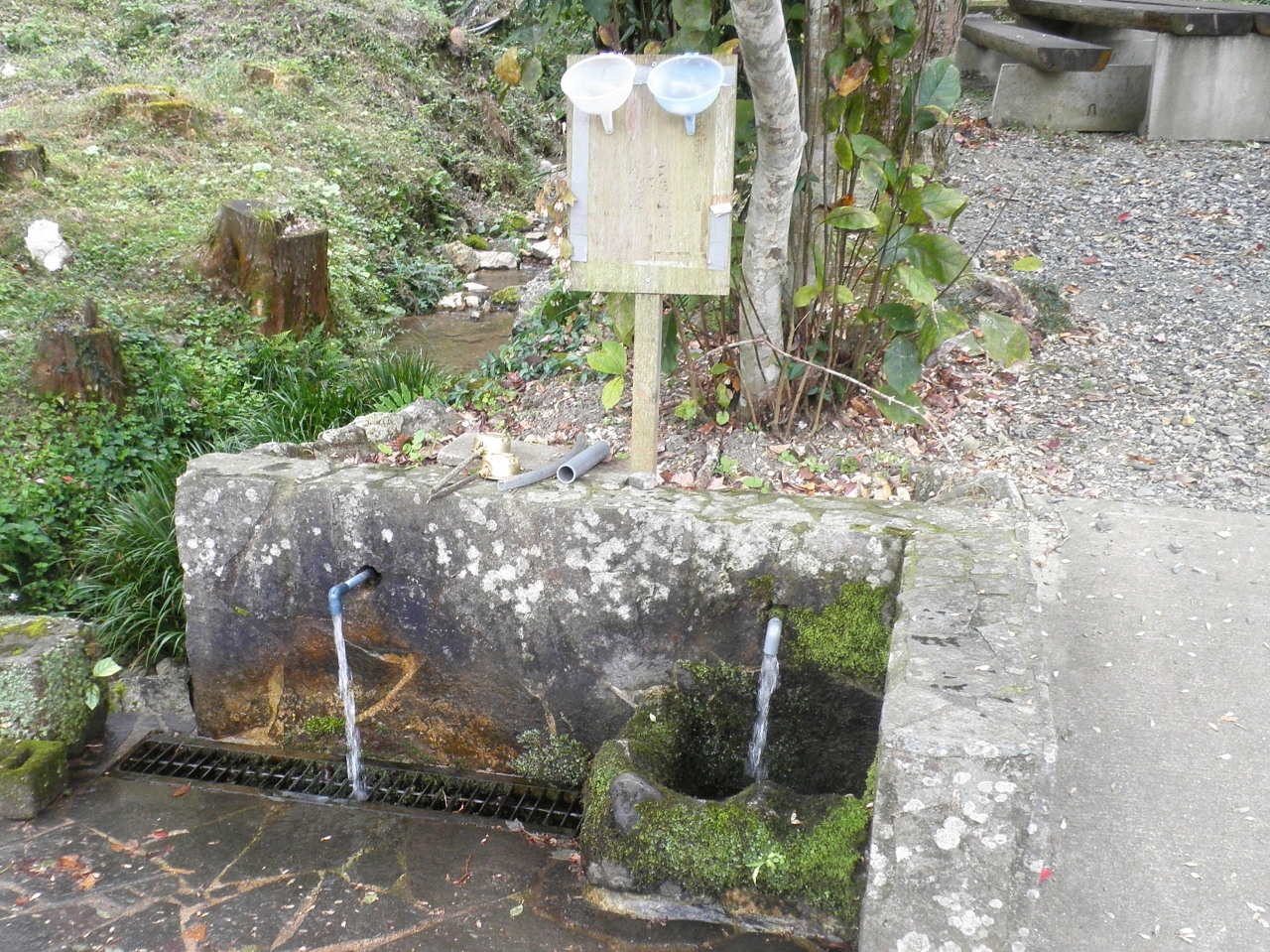 あまり観光地としては知られていませんが、地元では隠れた人気の水汲みスポットのようです。里山の滝から水が直接引かれており、新鮮で美味しい水が自由に汲めます。