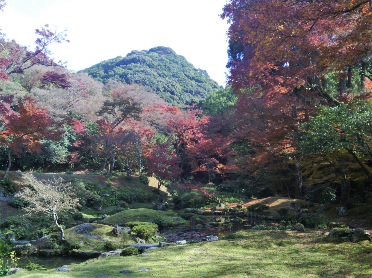 庭園は背後の山を借景に、木々と池が配され、それほど大きくはないものの、全体で一つの自然を表現したような統一感があります。紅葉の季節に訪れましたが、見事な美しさでした。