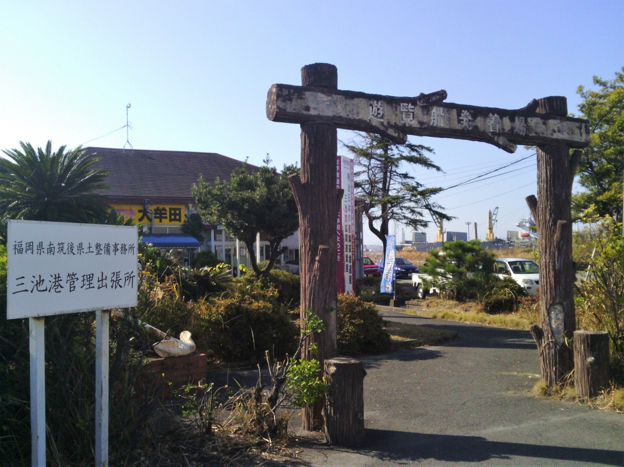 三池港の船渠と呼ばれる部分の南側(=港の東南部)にある建物です。三池港展望所から車で3分程だったと思います。