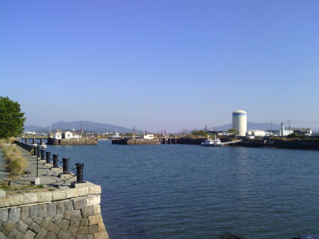 島原への高速船乗場がある「あいあい広場」からは水位を保つ関門が見られます。