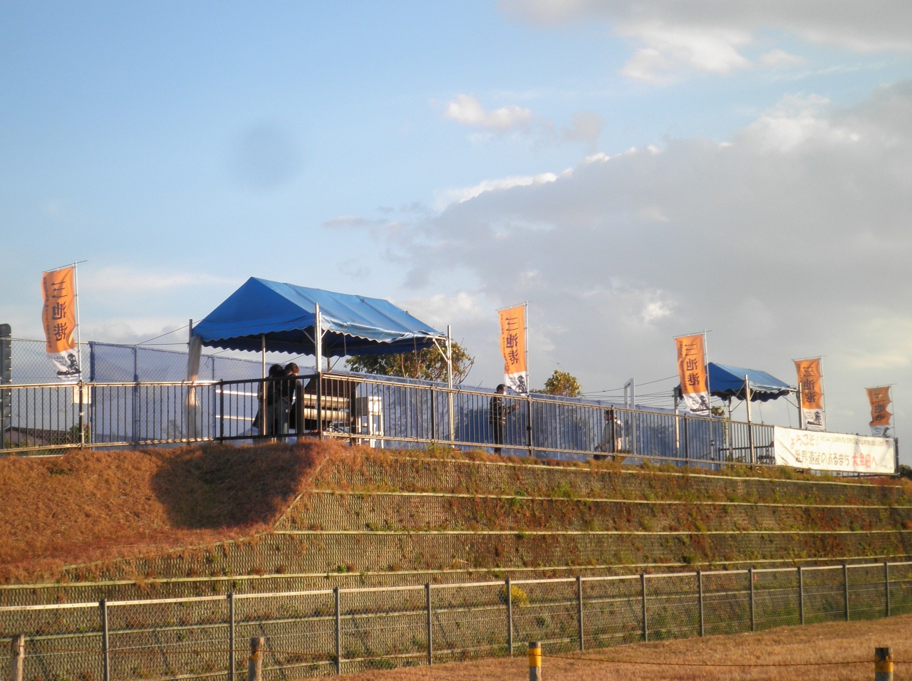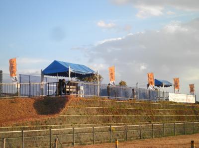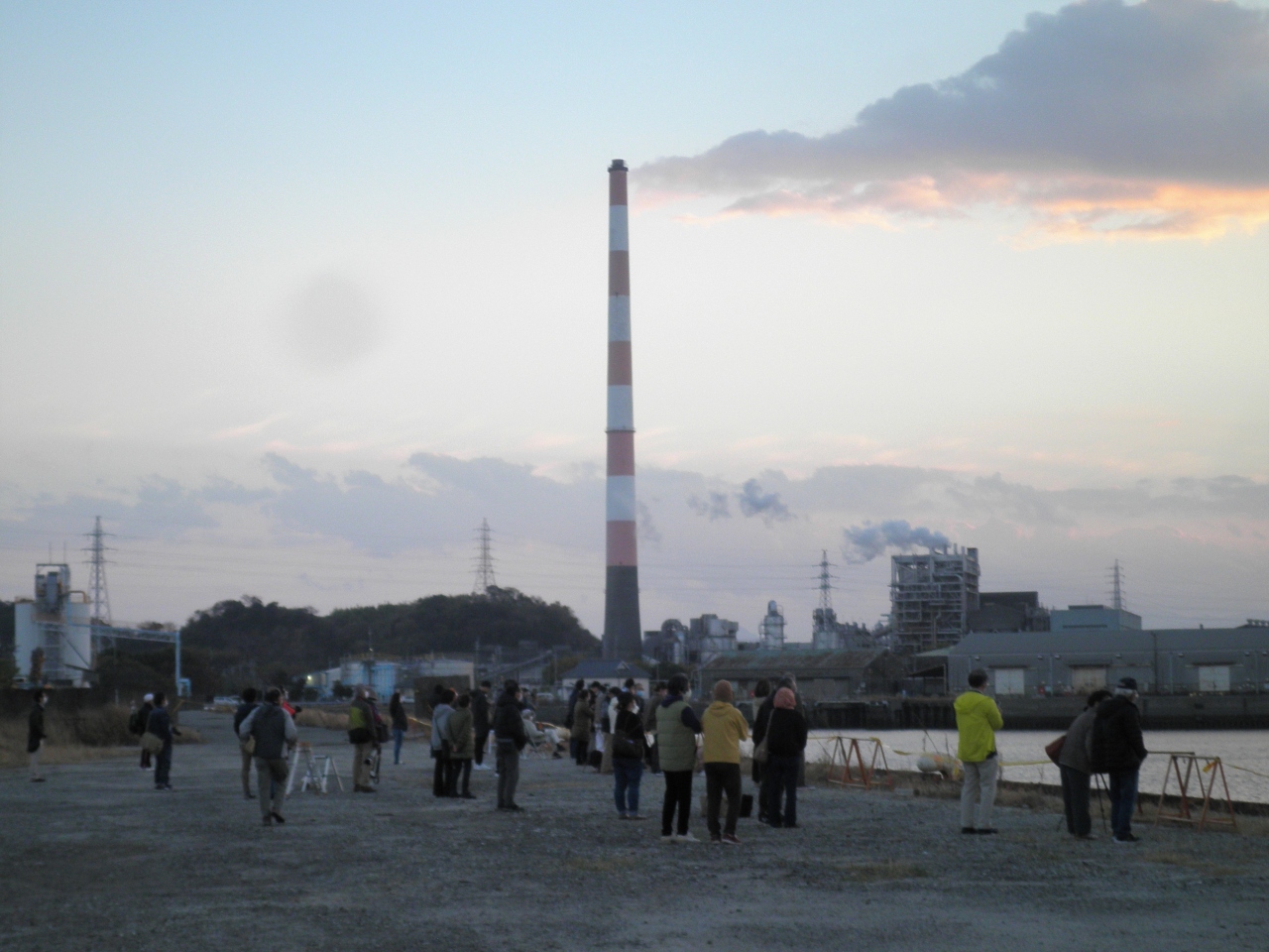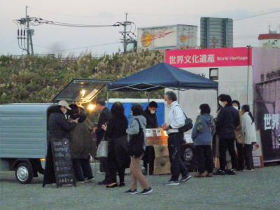 会場は三池港展望所と道路を隔ててすぐの岸壁(期間中は夕日にあわせて、通常は入れない岸壁が公開されます)。