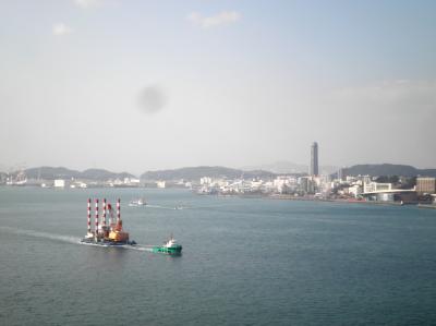 リニューアルされて展望デッキができていて、関門橋と関門海峡が眺められました。