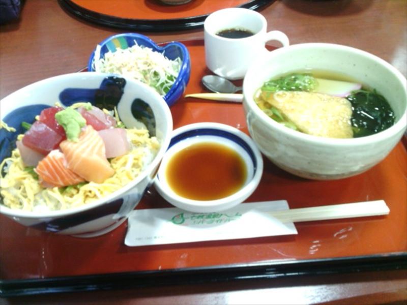 レストランも利用しましたが、普通のメニューとカフェテリア形式(小鉢や惣菜が棚に並んでおり、レジで精算)が併用されていました。日帰り定食がお得でしたが、総菜や巻きずしなどを購入してもそれほど高くなく、いろいろな利用ができそうです。- 旅行時期