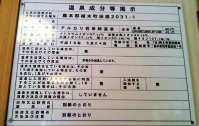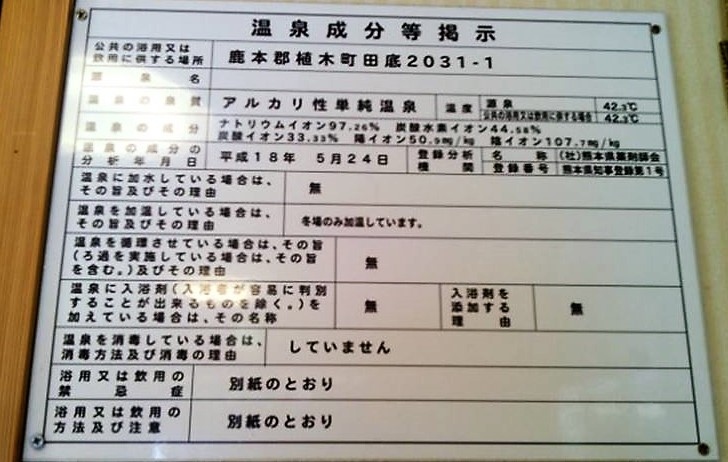 施設は大浴場と家族湯。大浴場はシンプルながらも内湯に露天もあり。熊本県の銭湯組合に入っていて、低料金ですが、かけ流しの良質な温泉が楽しめます。泉質は「アルカリ性単純泉」は㏗.9.5以上のトロトロの湯で、ほのかに硫黄の匂いも感じました。消毒なし加水なし、冬場のみ加温という本格派の温泉です。