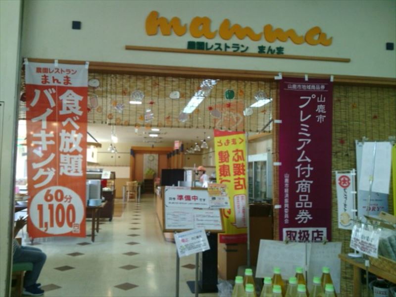 「水辺プラザかもと」の中にあるバイキングのレストランです。