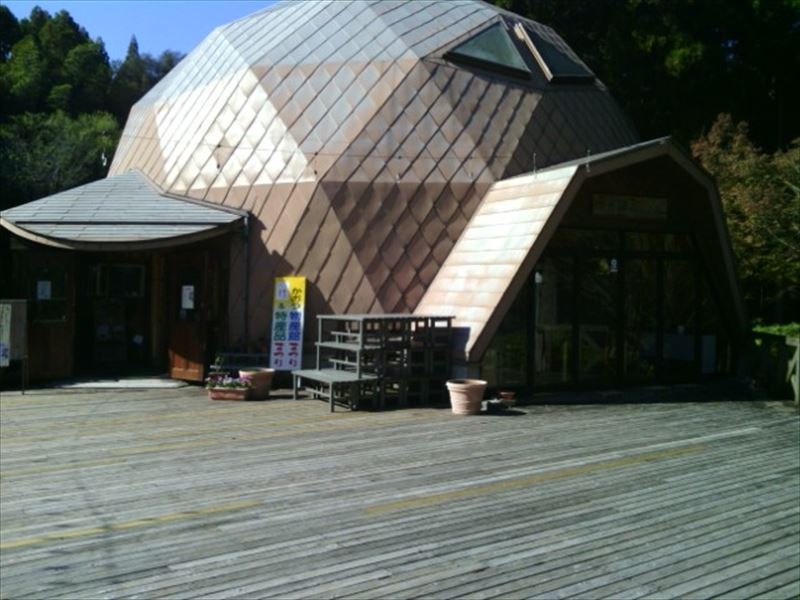 「ふれあい館」はレストランですが、手工芸物産館・ギャラリーの「やすらぎ館」と双子のドームのような形になっていて、とてもユニークな建物です。