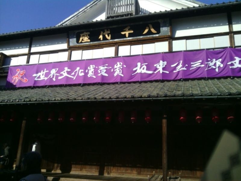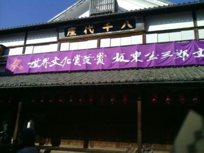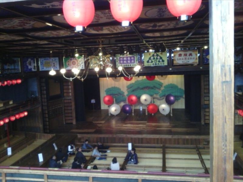 向かいの「夢小蔵」という建物で受付を行い、紹介のビデオを見て資料を見学した後、一定数が集まったところでガイドさんの案内で八千代座を見学。