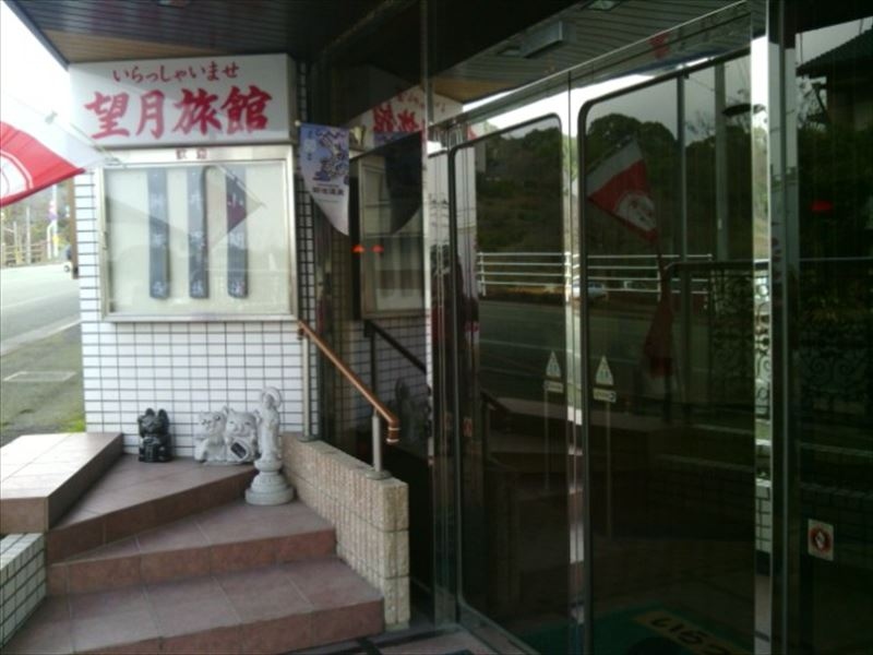 まず、きくち観光物産館で周湯券を購入と思ったらお休みでしたが、同じ敷地内の観光案内所で購入できました。物産館のすぐ前に望月旅館の看板があったので、車は物産館エリアの駐車場に置いて望月旅館へ。