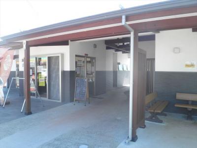 建物は二つあって、一つは改札から連なる駅事務所と待合室。この待合室は、がっしりした木のベンチやテーブルがあり、広さもあって、一角には図書コーナーまでありました。