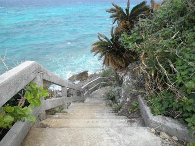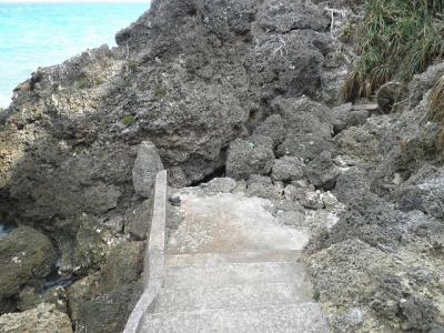 カラフルな標識にしたがい進むと、コンクリートの階段が海際の崖に沿って下りて行きます。それゆえ、絶景で自然の雄大さを感じられる場所でもあります。