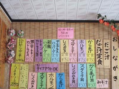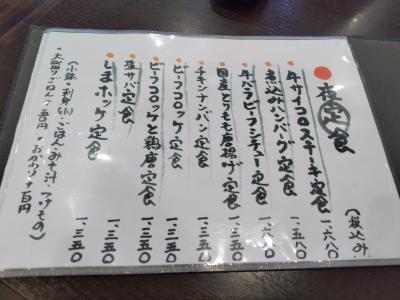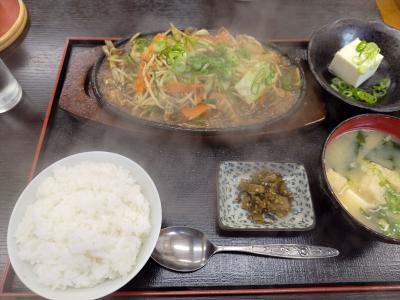 町食堂風に定食、うどん、ラーメン、ちゃんぽんと、メニューはいろいろありますが、人気は鉄板焼きのお肉系定食のようです。