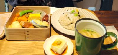 曲げわっぱは、箱の中にいろんな料理が入り、薄味で体に優しい味わいでした。カレーランチはまろやかな味の中にもスパイシーな味覚が入り、こちらも美味しかったです。