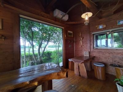 内装もウッディでテーブルや椅子も天然木をそのまま加工してあるようです。