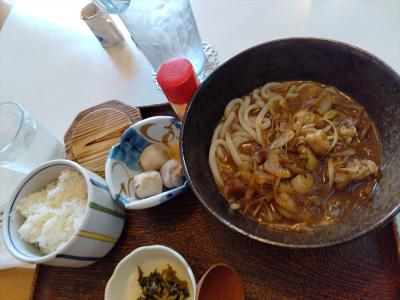 チキン南蛮は、カラッと揚がった鶏肉にちょうど良い感じのタルタルソースがかかり、パプリカがアクセントになっています。チキン自体がかなり大きくて、お腹いっぱいになりました。カレーうどんは洋風の味わい。こちらもお肉がたくさん入っていて、ボリュームがあります。