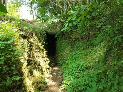 そこから細い山添の道沿いにトンネルや地割れなどが見られ、菅原神社の下あたりが最上部となっています。
