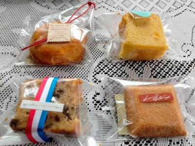 ケーキが人気ですが、今回は焼き菓子を四種類(バンドジェンヌ、イボアール、フルーツケイク、フィナンシェ)を購入しました。