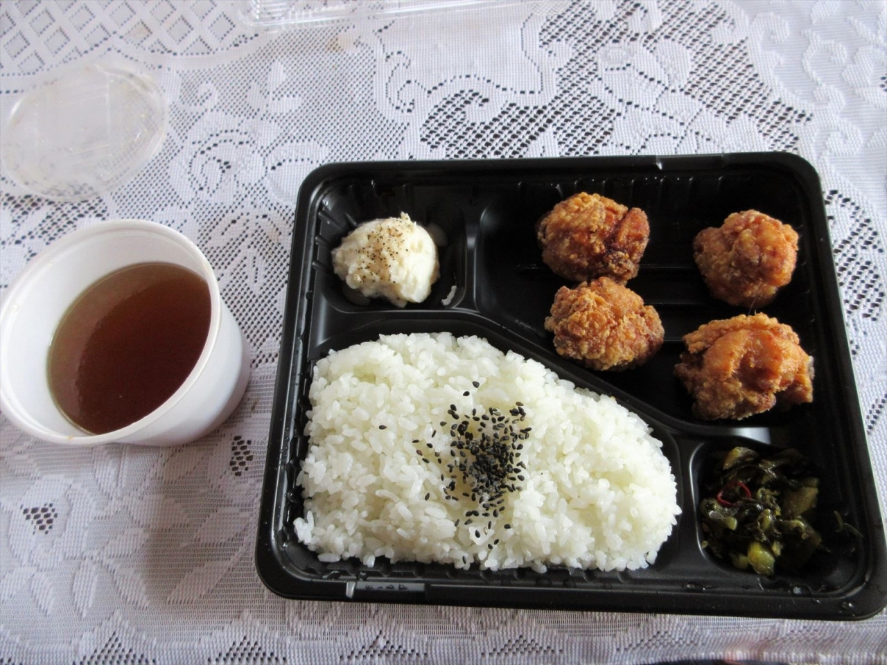 一番人気の「にんにくもも」(中)の弁当を食べてみました。唐揚は四つ入り、にんにくタレに付け込まれたと思われる唐揚げはジューシーで美味しくご飯が進む味付けでした。
