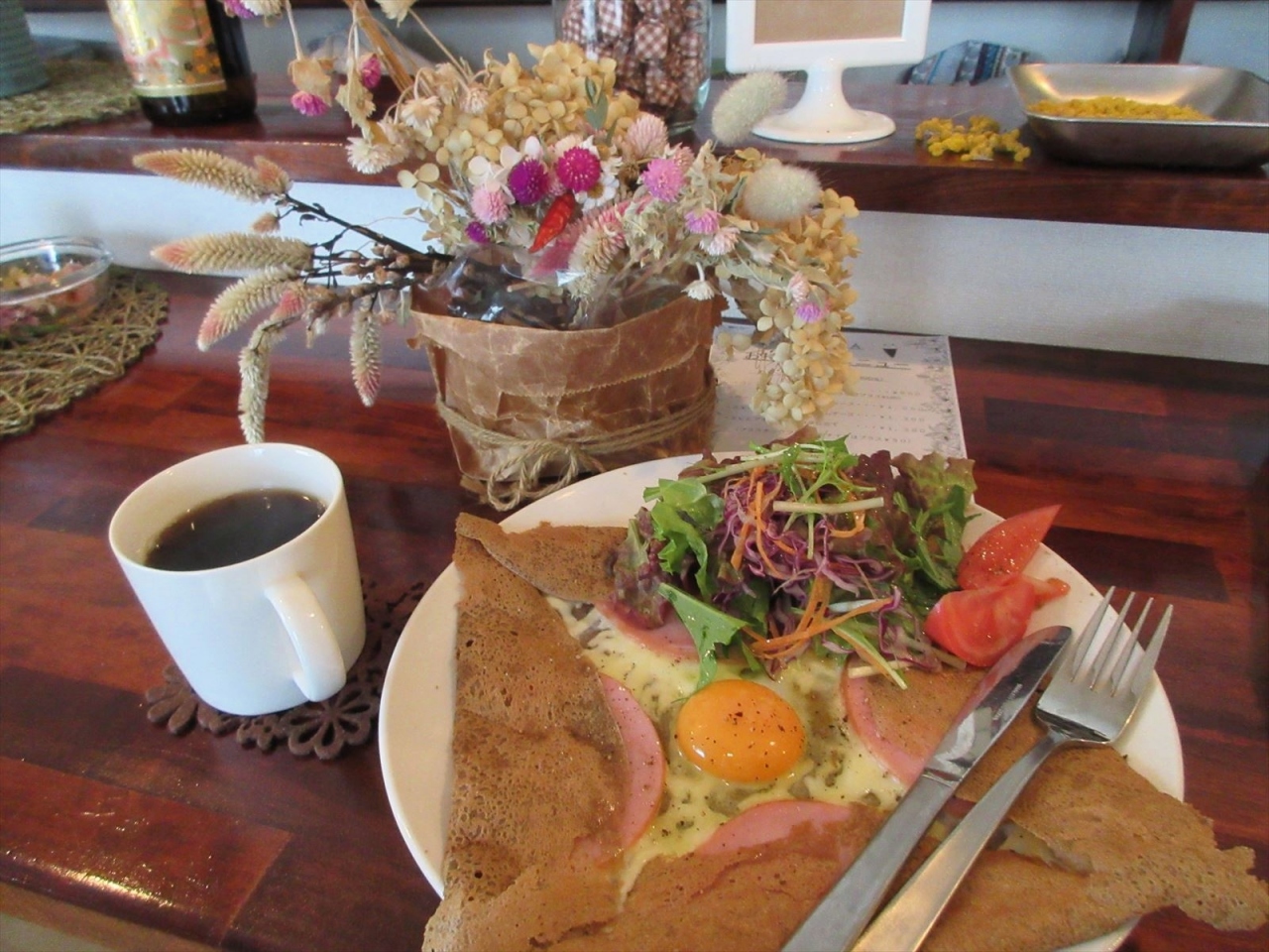 ベーシックなコンプレット(卵、ハム、チーズ)を食べてみましたが、焼きあげるときからガレットの香ばしい匂いがしてきて、生地と具材の相性も良く、見た目以上に食べ応えがありました。ガレットの味からして、クリーム系の具材も良くあいそうです。