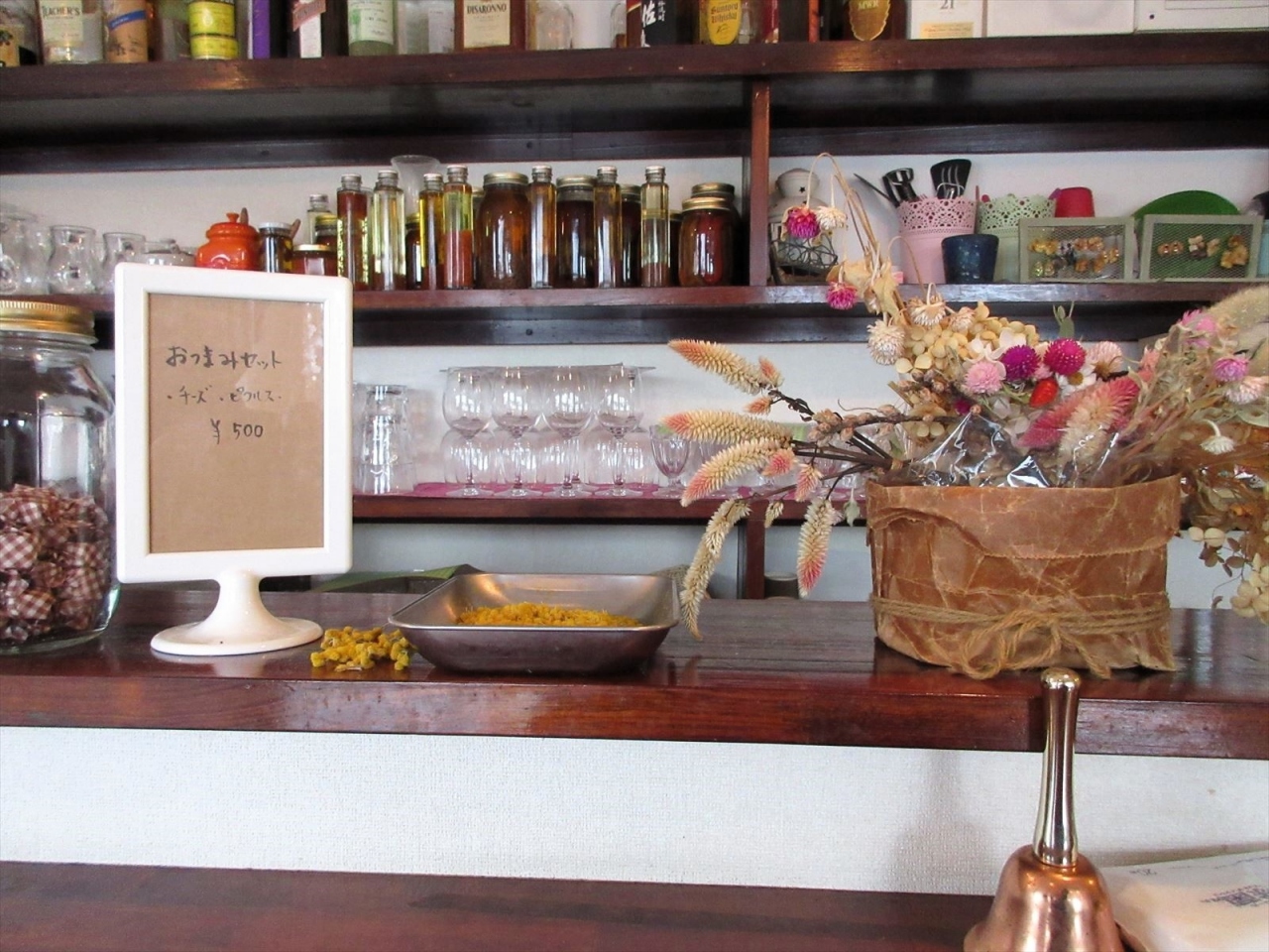 外観も内装もお洒落。ドライフラワーなどが飾ってあり、店主の方がお店を大切にしていることが伝わってきます。