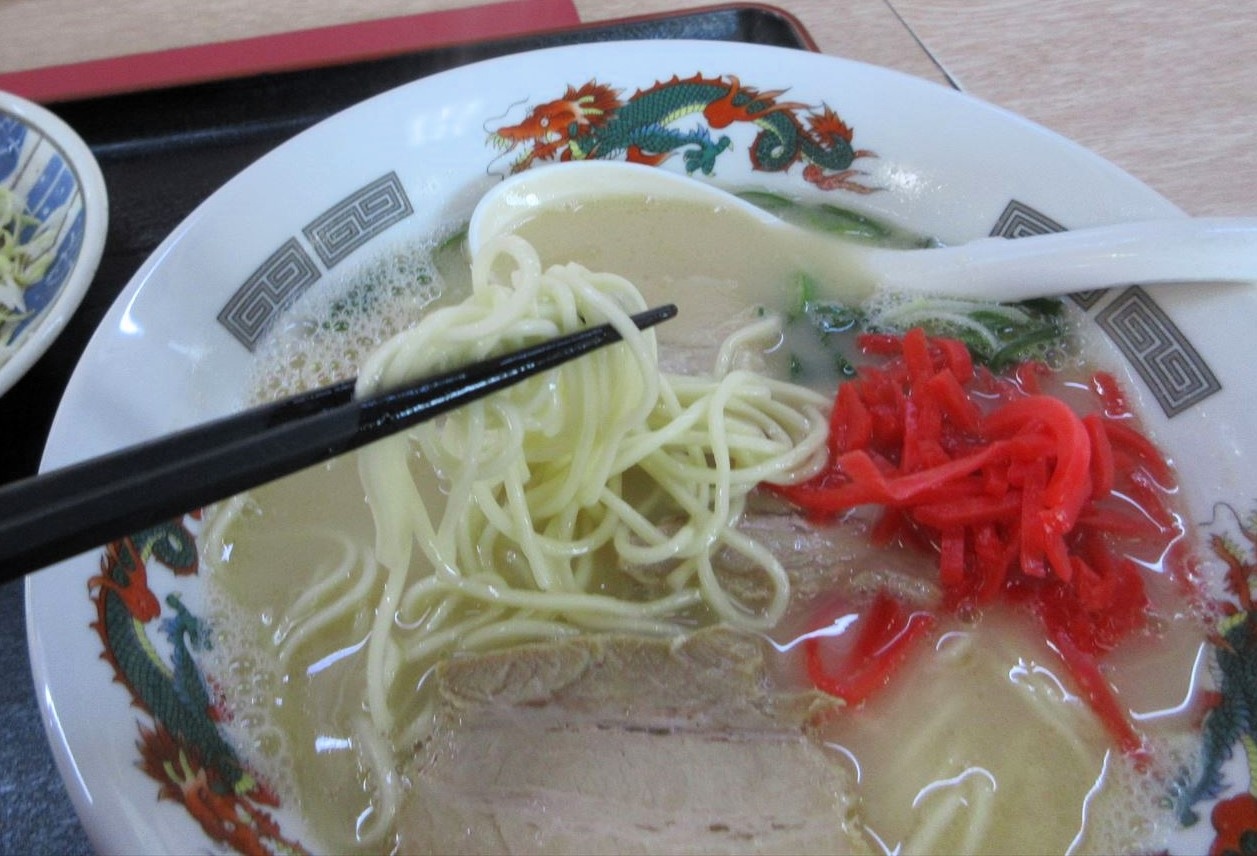 今回はラーメンセット(豚骨ラーメン、焼き餃子、ご飯)を食べてみました。大牟田のラーメンは太めの麺を使うことが多いのですが、ここは細麺。豚骨のスープも、きつ過ぎず、甘すぎずの適度なもので、美味しくいただきました。