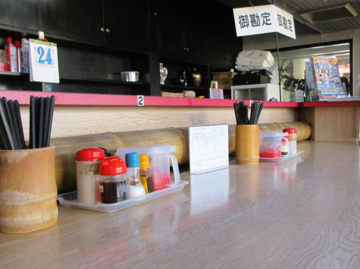 広い道に面し、駐車場も完備。店内も比較的広くカウンター席、テーブル席、畳席とあります。周囲は新旧の住宅街やスーパー、ホムセン、ドラッグストアなどが集まっています。そうした環境なので、土日などはファミリー客も多く来店。地域に親しまれているラーメン屋さんです。