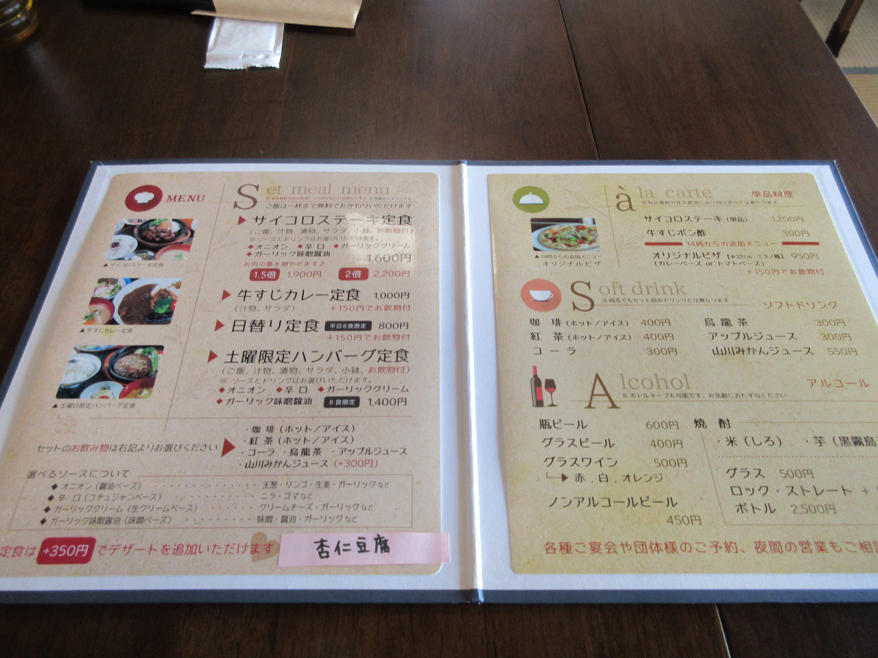今回はサイコロステーキ定食と、牛すじカレー定食+コーヒーでお願いしました。