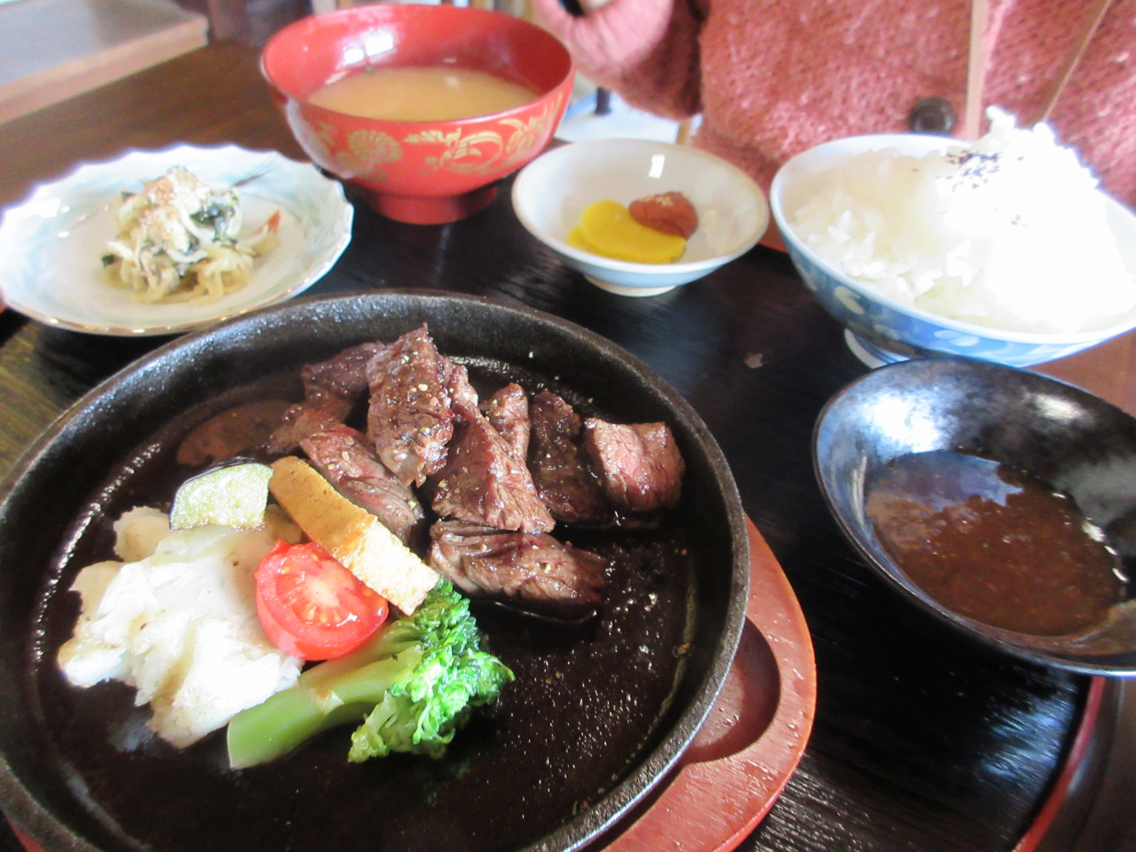 人気のサイコロステーキ定食(サラダ・ドリンク付)は四種類のソースから選び、お肉も柔らかくて旨味があり、予想以上の美味しさでした。