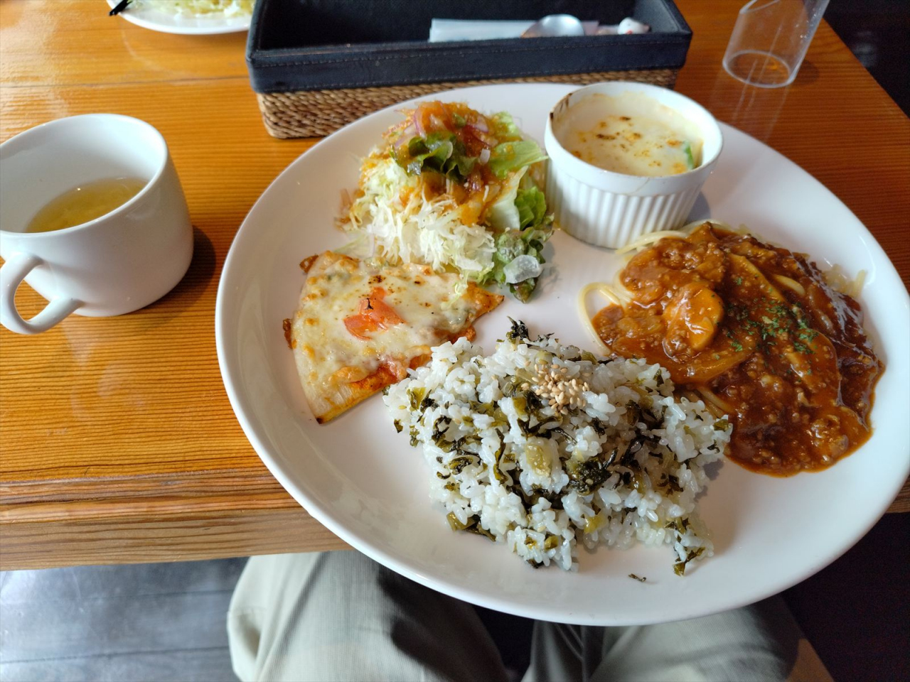 Motto日替わりは、バラエティに富んだ料理、見た目も楽しくて、すべて美味しくいただいました。ハンバーグドリアはアツアツ、ボリュームたっぷりで、こちらもとても美味しかったです。