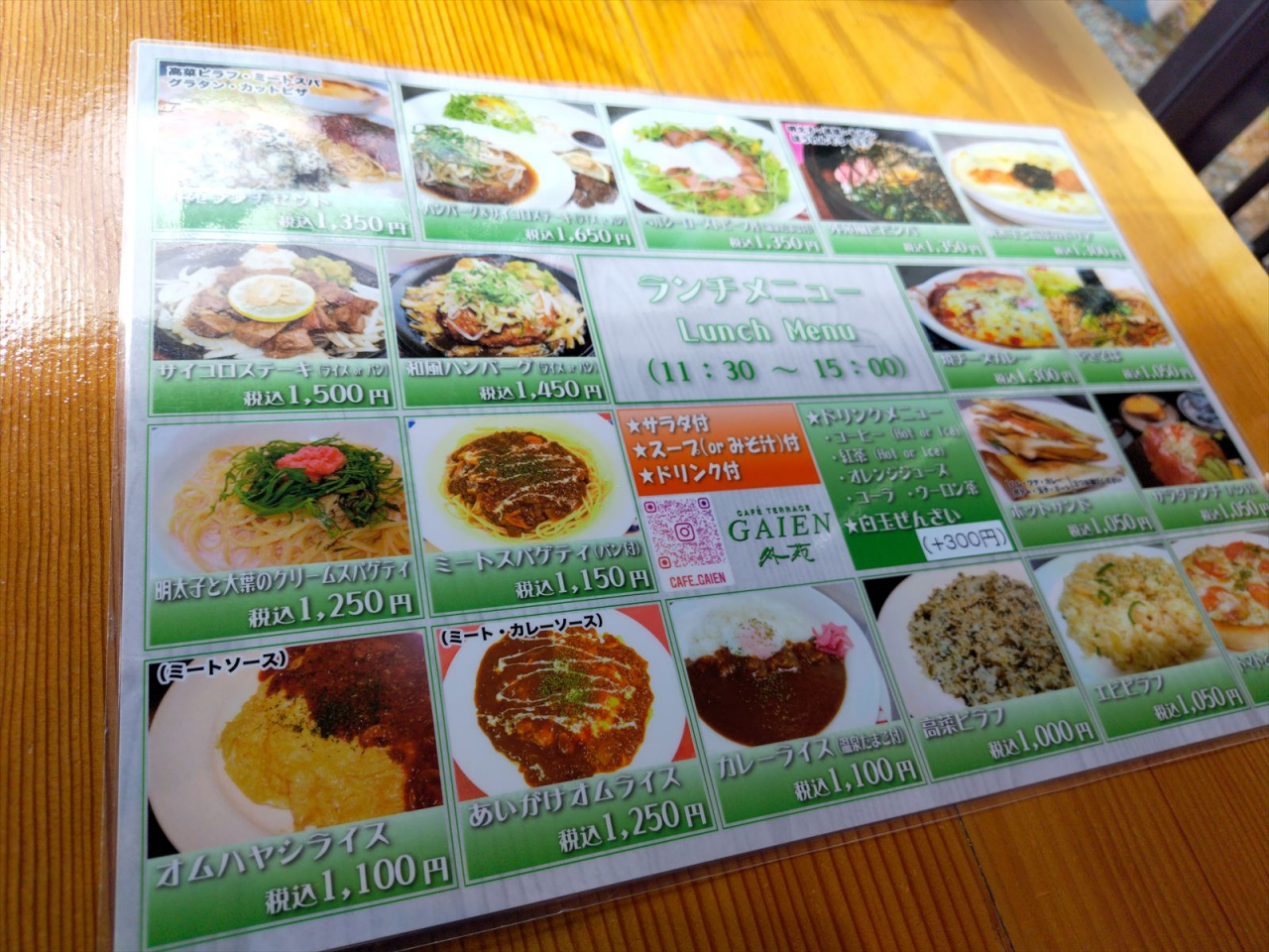 ランチは多くの種類があり、その多くのお値段は1200円ほど。ランチメニューではライス、スープ、サラダ、フルーツ、ドリンクはセルフサービスで自由に食べられます。